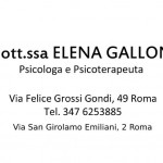 La psicologa Elena Galloni è stata il mio punto di riferimento in un particolare periodo della mia vita: una disavventura lavorativa e l'allontanarsi di amici che reputavo sinceri mi aveva reso particolarmente triste ed abbattuta. Le consulenze della psicologa, sempre estremamente pazienti e comprensive, hanno evitato che si sviluppassero delle problematiche psicologiche.
